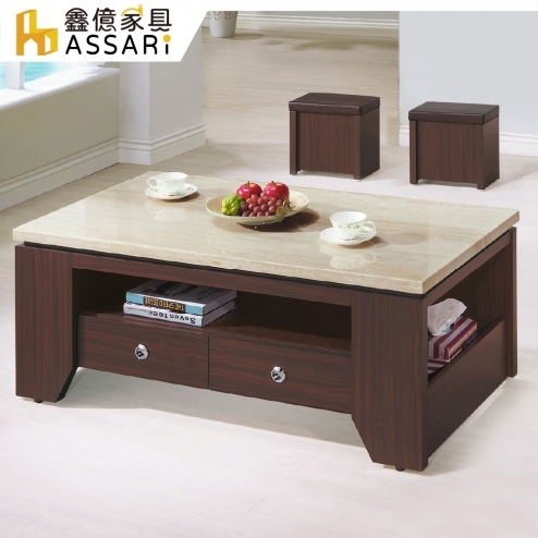 艾芮4.3尺石面大茶几(含2椅凳)(寬130x深70x高46cm)