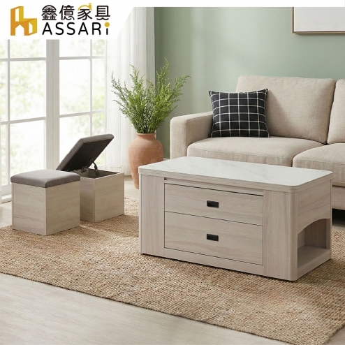 泰子機能岩板升降茶几/餐桌(附椅凳)