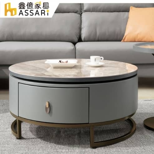 布萊恩岩板旋轉大茶几(寬80~120x深80x高35cm)