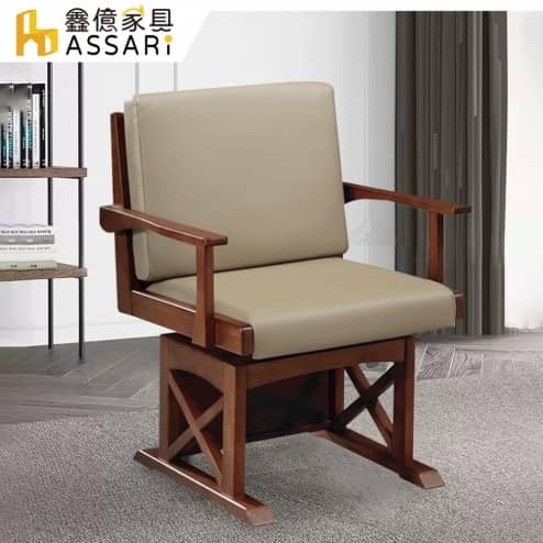 漢斯實木旋轉皮椅/休閒椅(寬60x深58x高84cm)