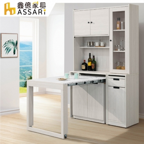 雨果4尺伸縮多功能桌收納櫃組(寬117x深40x高191cm)