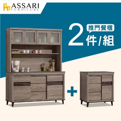 古橡木5尺推門餐櫃二件組(全組+5尺下座)