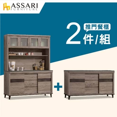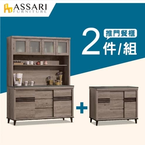 古橡木5尺推門餐櫃二件組(全組+2.7尺下座)