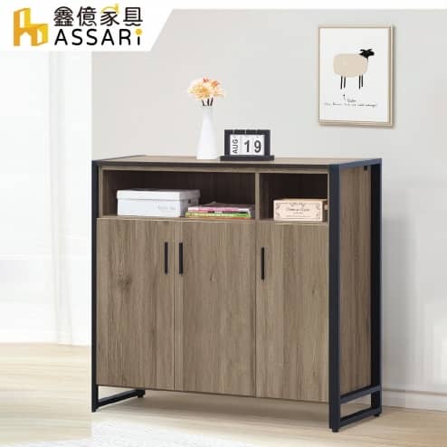 鐵框灰橡2.8尺鞋櫃(寬83x深40x高100cm)