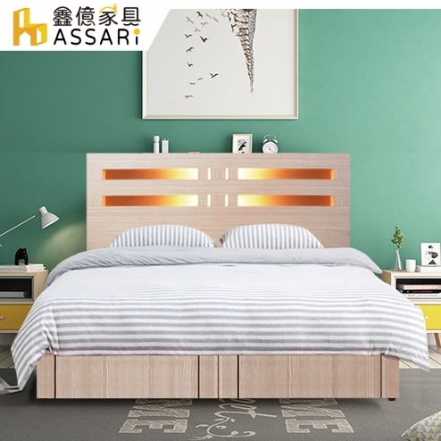 夏樂蒂內崁燈光機能型床組(床頭片+抽屜床底)雙大6尺