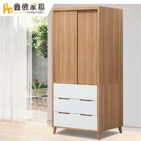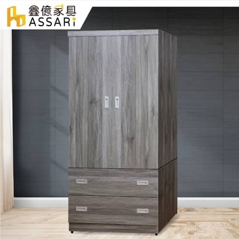 歐爾曼灰橡2.7尺雙門二抽衣櫃(寬80x深60x高180cm)