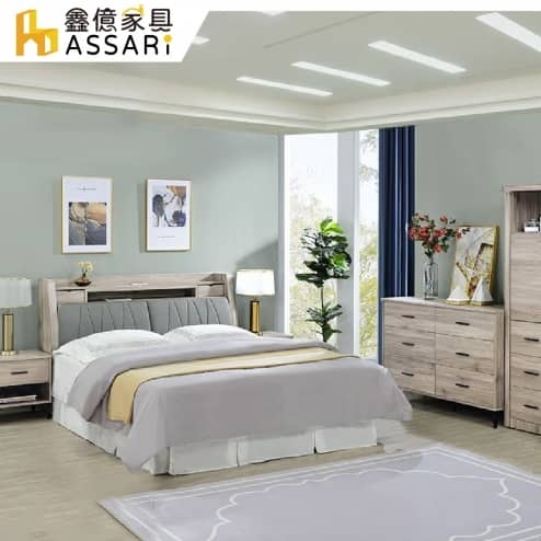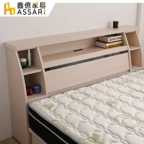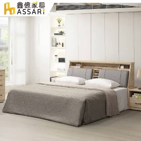 肯詩特原橡雙色貓抓皮收納床頭箱-雙大6尺