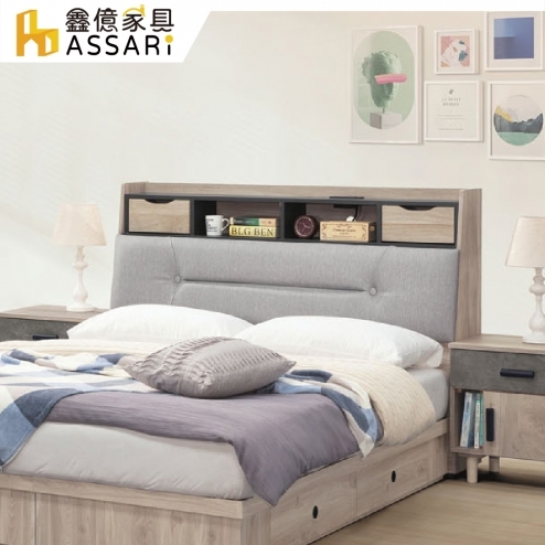卡洛琳USB插座收納床頭箱(雙大6尺)