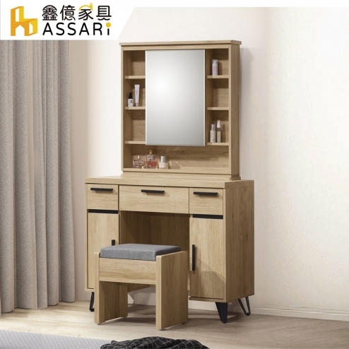 艾倫3尺化妝桌椅組(寬90x深40x高147cm)