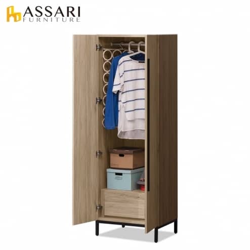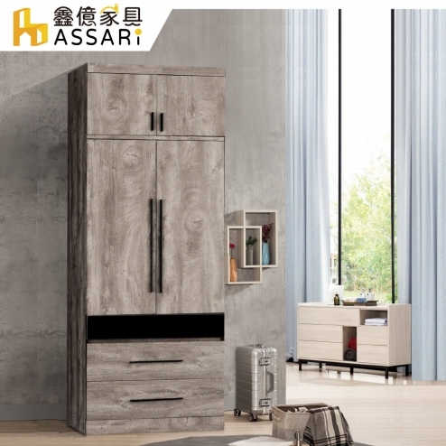 歐爾曼灰橡2.7尺雙門二抽衣櫃(寬80x深60x高180cm)
