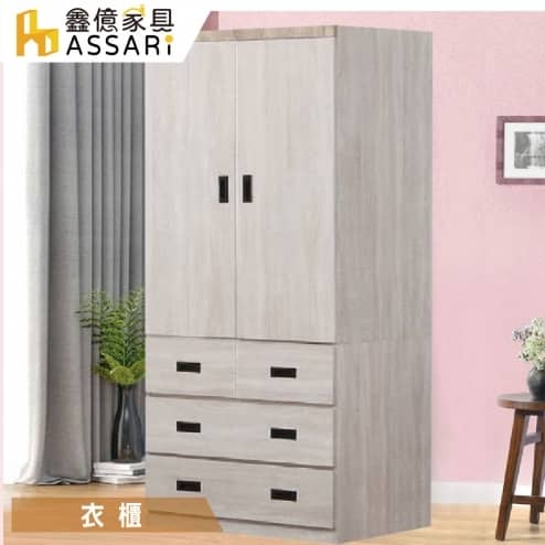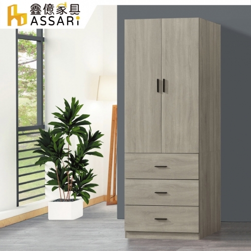 卡爾2.6尺單吊三抽衣櫃(寬79x深56x高209cm)