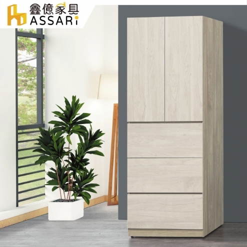 歐克曼2.5尺單吊三抽拉門加高衣櫃(寬76x深60x高242cm)