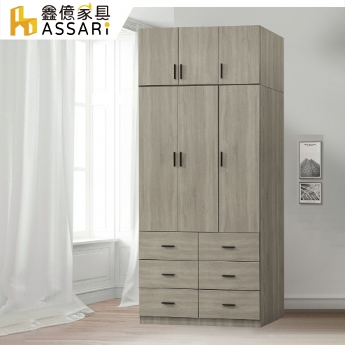 金碧4尺雙吊六抽加高衣櫃(寬120x深58x高248cm)