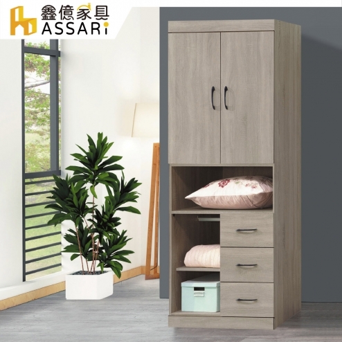 歐克曼2.5尺單吊三抽拉門衣櫃(寬76x深60x高202cm)