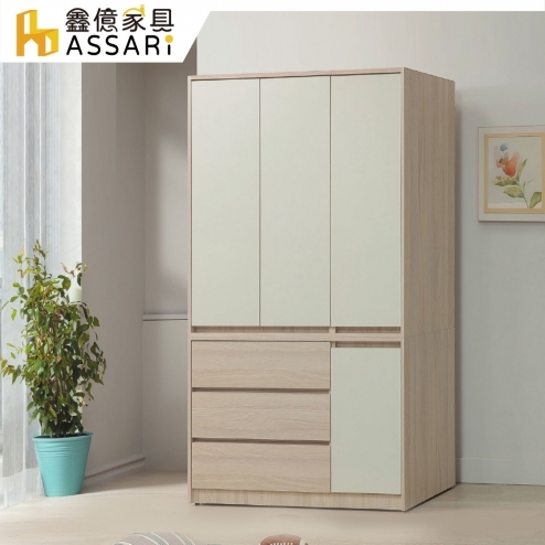 卡拉2.7尺三抽衣櫃(寬80x深55x高198cm)