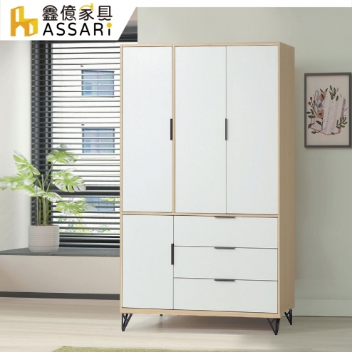 艾莉爾4尺三抽衣櫃(寬120x深55x高200cm)