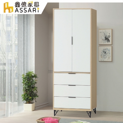 原木雙色鐵腳2.5尺三抽衣櫃(寬76x深55x高202cm)