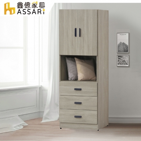 北美2.5尺三抽加高衣櫃(寬75x深60x高242cm)