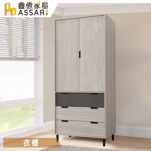 布茲2.7尺雙門三抽衣櫃(寬80x深60x高200cm)