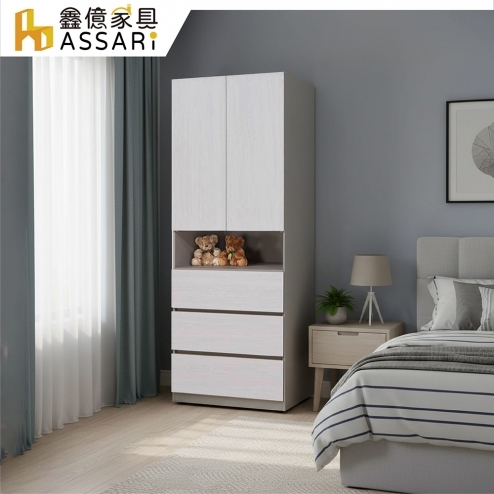 安迪2.5尺三抽加高衣櫃(寬75x深57x高249cm)(訂製款)