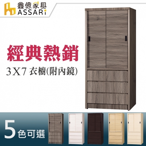 默文原切7.5尺推門衣櫃(寬224x深59x高197cm)