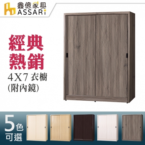 波本5X7尺推門衣櫃-附鏡(寬150x深59.5x高202cm)