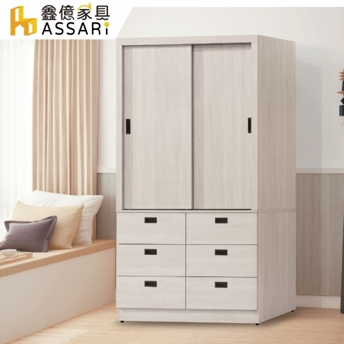 寶麗白雲橡4x7尺推門六抽衣櫃(寬120x深57x高200cm)