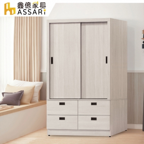 寶麗白雲橡4x6尺推門四抽衣櫃(寬120x深57x高179cm)