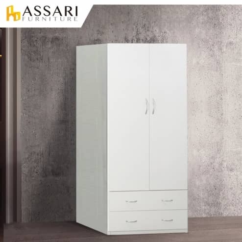 防潮防蛀塑鋼2.7尺緩衝二門附抽衣櫃(寬82深63高198cm)