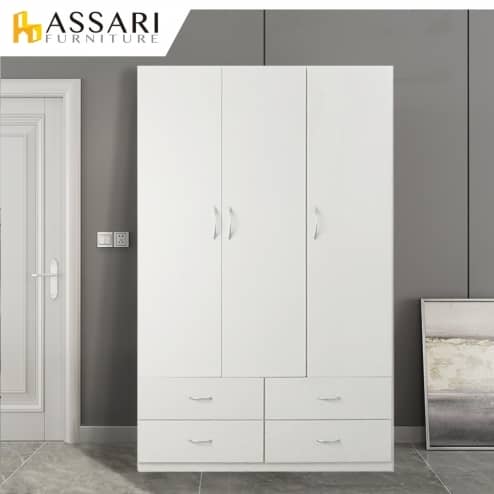防潮防蛀塑鋼4尺緩衝三門附抽衣櫃(寬123深63高198cm)