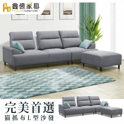 艾立舒適護腰L型貓抓布沙發(四人座+79x79cm腳椅)