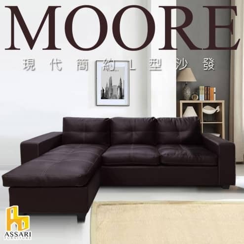 莫爾時尚皮革L型沙發