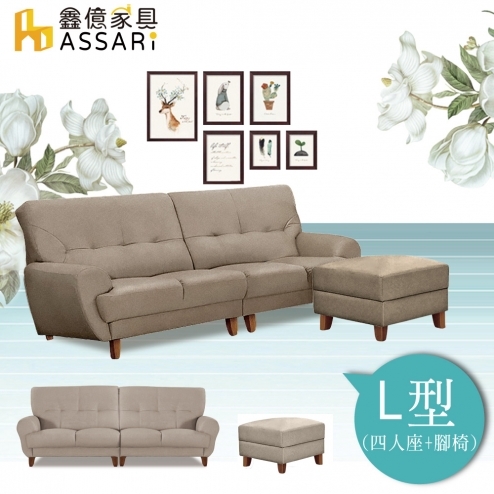 安德斯L型貓抓皮獨立筒沙發(四人座+70x90cm腳椅)
