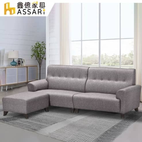 金沙透氣L型貓抓皮沙發(四人座+75x62cm腳椅)