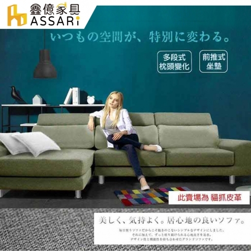 傑西L型貴妃加長貓抓皮耐磨沙發