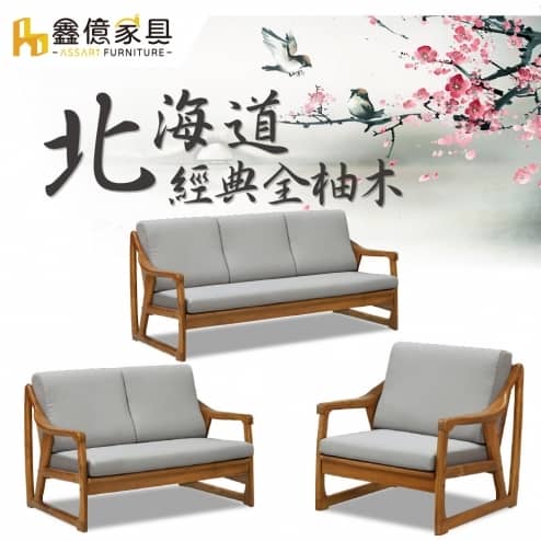 北海道全柚木1+2+3人沙發+大小茶几(含2椅凳)