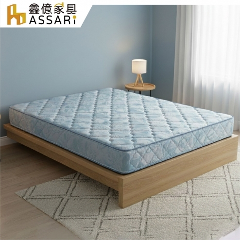 藍色厚緹花布護背式冬夏兩用彈簧床墊(單人3尺)