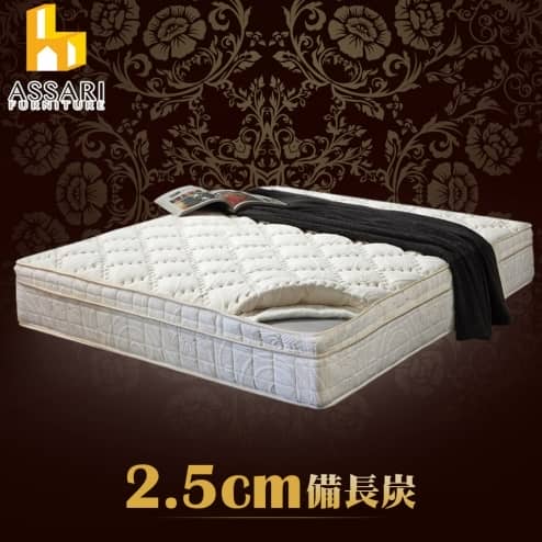 典藏2.5cm備長炭三線強化側邊獨立筒床墊(雙大6尺)