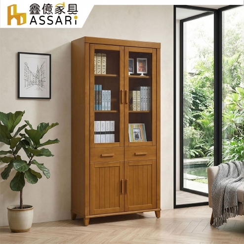 2.8尺莉森南檜四門書櫃(寬84x深38x高190cm)