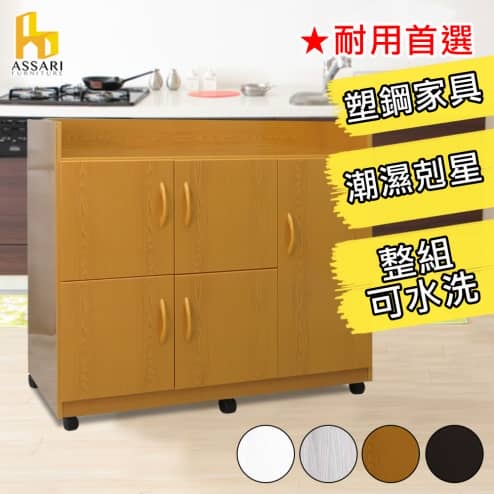 水洗塑鋼3尺緩衝五門碗盤櫃/廚房櫃-附輪(寬95深40高88cm)
