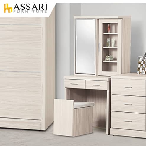 霍爾白梣木2.7尺旋轉化妝桌椅組(寬81x深40x高162cm)
