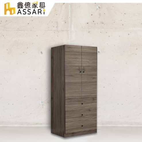卡樂夫2.5x7尺拉門三抽衣櫃(寬75x深56x高199.5cm)