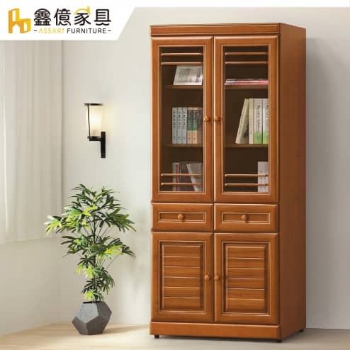 查理克實木樟木色中抽書櫃(寬81x深39x高180cm)