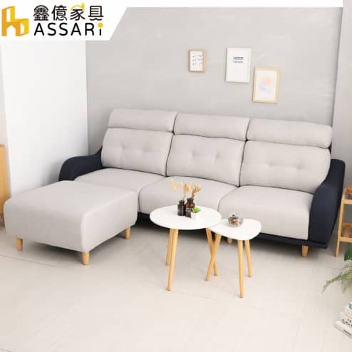 海克特耐磨機能L型涼感布沙發(四人座+腳椅)