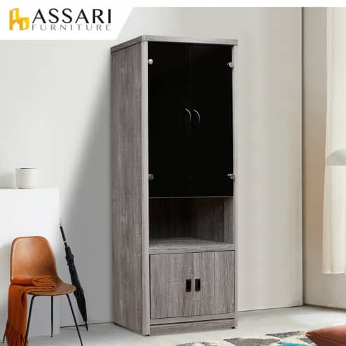 黑金剛2.3尺浮雕灰橡展示櫃
