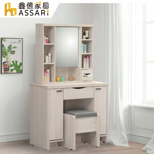寶麗白雲橡3尺化妝桌椅組(寬97x深40x高161cm)