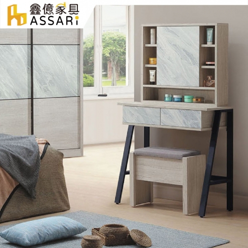 艾曼妮2.6尺化妝桌椅組(寬75x深40x高141cm)