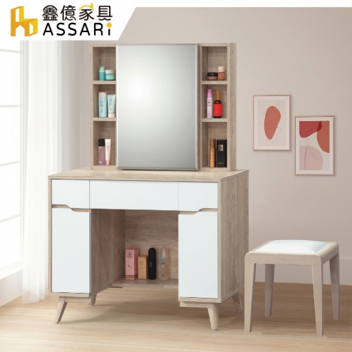 肯詩特原橡雙色3.3尺化妝桌椅組(寬100x深40x高143cm)
