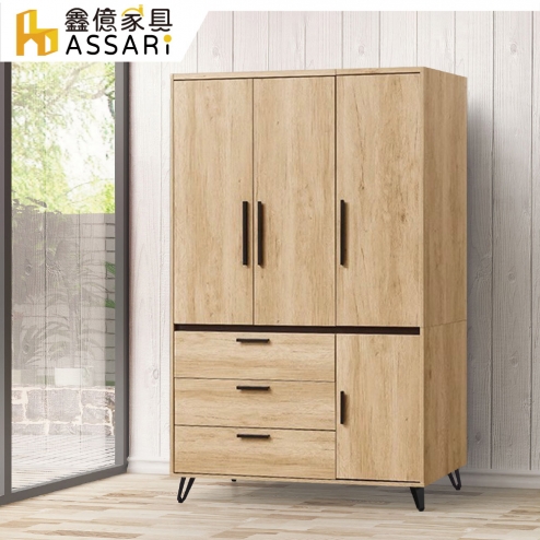 北美4尺三抽衣櫃(寬120x深60x高203cm)