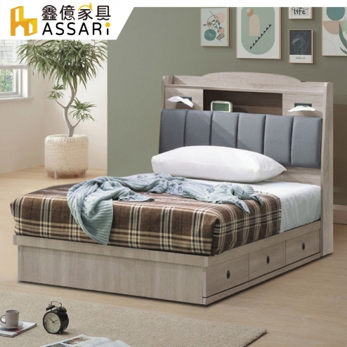 卡爾貓抓皮收納插座床頭箱-單大3.5尺